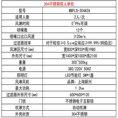 304不銹鋼雙人單吹風(fēng)淋室參數(shù)